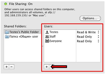 terão acesso à pasta, clique no sinal de positivo + que está localizado por baixo